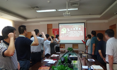 物資公司:全體黨員面對(duì)鮮紅的黨旗,舉起右手,再次向黨和人民做出鄭重的承諾,舉行了莊嚴(yán)的“重溫入黨誓詞”儀式。與會(huì)黨員同志講黨課,回顧黨的輝煌歷史。
