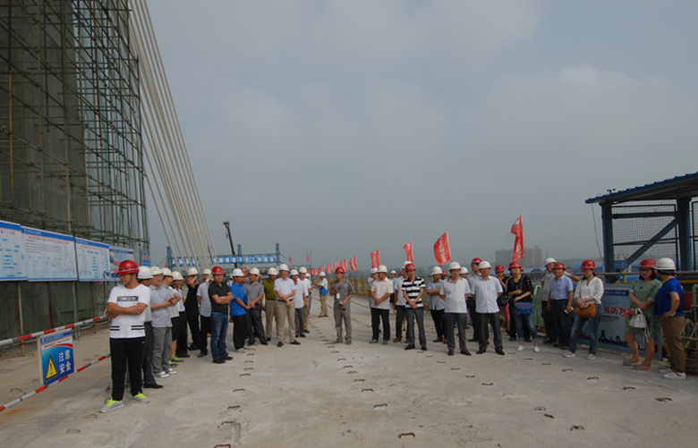 2016年8月5日上午,河南交通集團具有副高以上職稱的、參加工程類再教育研修班的專家型學(xué)員一行50余人集體到商登高速南水北調(diào)斜拉橋觀摩指導(dǎo)工作。河南省公路工程局集團二公司總經(jīng)理兼商登高速鄭州境段BT項目總經(jīng)理周合寬向大家簡要介紹了項目概況、工程特點、施工進展等方面情況,南水北調(diào)斜拉橋技術(shù)負責(zé)人李志華向大家詳細介紹了該橋的特殊結(jié)構(gòu)及其施工中采取的主要技術(shù)措施;在引領(lǐng)大家參觀的過程中,對照實例,現(xiàn)場講述了該橋在施工組織、質(zhì)量管控、安全管理、進度管理、綠色施工等方面采取的一系列新工藝、新技術(shù)及其收效。專家型學(xué)員們情緒高漲,熱烈討論,在對商登高速南水北調(diào)斜拉橋所采取的一系列切實有效的管控措施一致首肯的同時各抒己見,提出了不少高屋建瓴的指導(dǎo)性意見。商登高速鄭州境段BT項目部及南水北調(diào)斜拉橋調(diào)度室將結(jié)合專家意見,采取積極措施,推動商登高速南水北調(diào)斜拉橋系統(tǒng)管理再上新臺階。