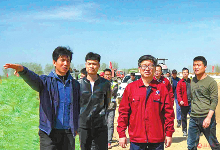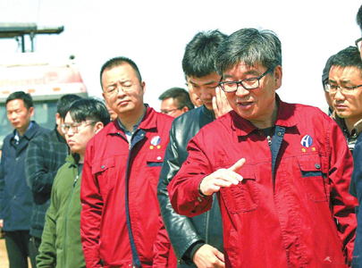 淮信公司董事長李小重(右二)在息邢高速公路TJ3-1工區(qū)檢查施工進度情況。